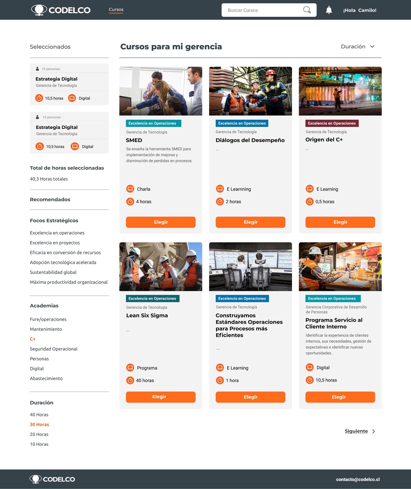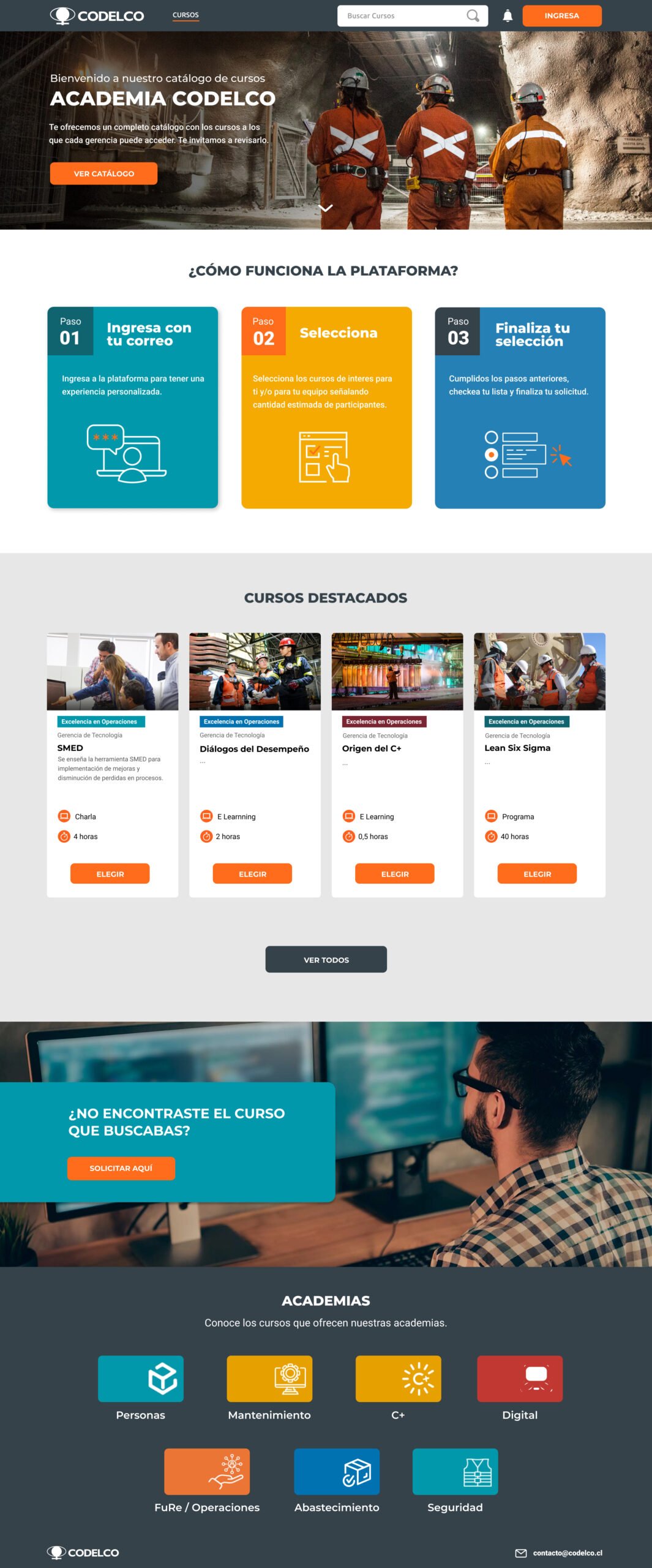 Mejorando la interfaz de usuario de la academia de capacitación de Codelco.